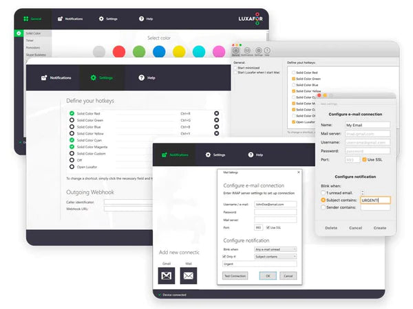 ✓ Stellen Sie Luxafor FLAG so ein, dass es nach Ihren Wünschen blinkt, z.B. wenn es ungelesene E-Mails gibt oder wenn Sie eine E-Mail mit einem bestimmten Wort erhalten.