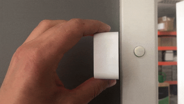 ✓ Befestigen Sie es mit dem mitgelieferten Magneten an einer beliebigen Oberfläche außerhalb des Raumes, in dem Sie arbeiten, oder legen Sie es einfach auf einen Schreibtisch